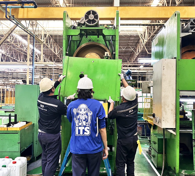 工場設備、プレス機、工作機械、などの納入作業、修理、オーバーホール.